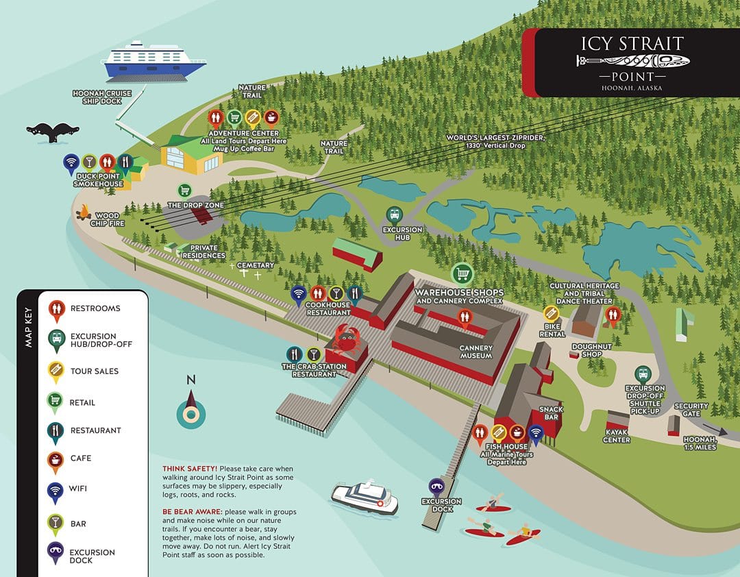 É o seguinte: trata-se um destino turístico de propriedade privada nos arredores da pequena vila de Hoonah, no Alasca . Localizado na Ilha Chichagof e recebeu o nome do Icy Strait Point (Ponto Estreito de Gelo). De propriedade da Huna Totem Corporation (único destino de cruzeiroViagem a bordo de um navio cruzeiro. More de propriedade privada no Alasca), já que a maioria das paradas são de cidades em que estão localizadas. A Huna Totem Corporation pertence a aproximadamente 1.350 nativos do Alasca com laços aborígines com Hoonah e a área de Glacier Bay . Muitos deles são do povo Tlingit . Leia mais…